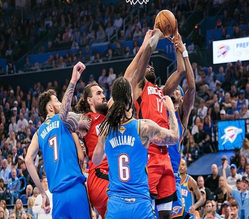 在此前的一场NBA常规赛中,主场作战的卫冕冠军俄克拉荷马城雷霆经过双加时苦战后以125比124险胜了休斯顿火箭,取得了新赛季NBA常规赛的开门红,而火箭则是有些遗憾地遭遇了开门黑。