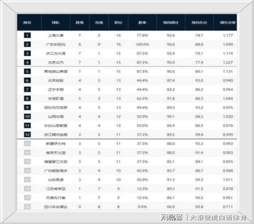①、7胜2负的上海男篮以先赛一场的优势,重新夺回榜首宝座;