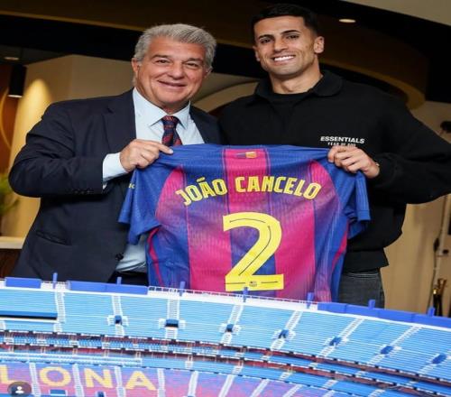 北京时间1月14日,在第二次官宣坎塞洛加盟后,巴萨官方又晒出了拉波尔塔与坎塞洛的合照,坎塞洛将会穿回此前租借巴萨时的2号球衣。