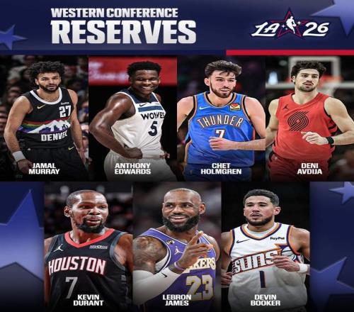替补阵容西部这边:爱德华兹、霍姆格伦、穆雷、布克、阿夫迪亚、詹姆斯和杜兰特;东部替补则是:米切尔、唐斯、杜伦、杰伦-约翰逊、鲍威尔、巴恩斯和西亚卡姆。